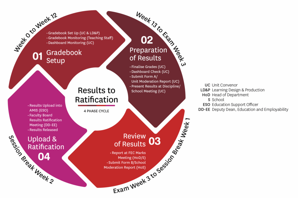 The R2R process is executed in four phases each session: distinct groups of staff will be primarily responsible during different phases, according to their roles and expertise within the assessment and ratification process